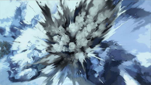 (さて、ここからはお互い賭けになるな……)爆風で雪が地面から吹き上がる中を、俺は勢いづけて走っていく。