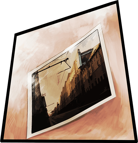 ビルや屋根の丸く膨らんだ伝統の建造物が立ち並ぶ、異国の風景が捉えられている。アラガミに破壊される前の街並みに、アラガミの襲撃に怯えた様子のない人々。穏やかな空気がその絵葉書から感じられる。