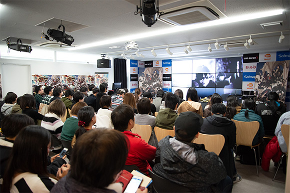 最初に登壇したのは、富澤シリーズIP総合プロデューサー、吉村シリーズ総合ディレクター、富山プロデューサー。「みなさんお集まりいただきありがとうございます」と秋葉原まで足を運んでいただいた多くのファンに感謝をしつつ、「本日はゲームの発売日なのに、みなさんは遊びもせずにここにいるわけですね?」と発言。来場者の方々の笑いを誘っていました。